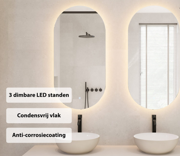Prime Sanitair | Ovaal Badkamer spiegel | Condensvrij vlak | Dimbaar | 3 LED Standen | Eenvoudige Installatie | Anti corrosie