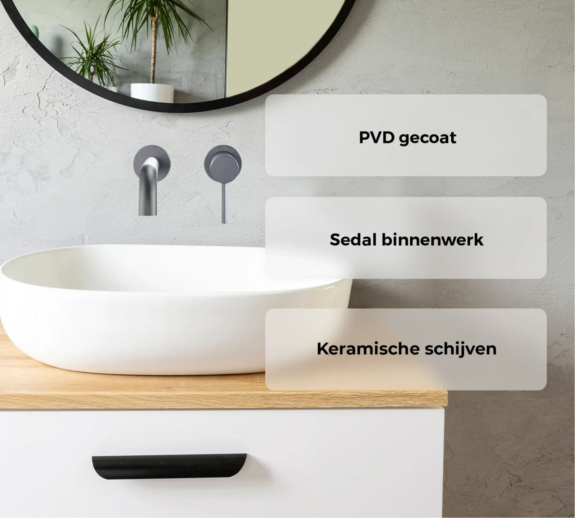 - Clean en strak design te combineren met de meeste wastafels